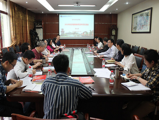 4月11日下午16:30,学院在A312会议室召开了2018年党建工作推进会暨全面从严治党工作布置会,公司党委书记杨兴国、党委副书记黄晓荣、各系室支部书记和纪委委员、中层干部、全体辅导员及员工支部书记参加了此次会议。