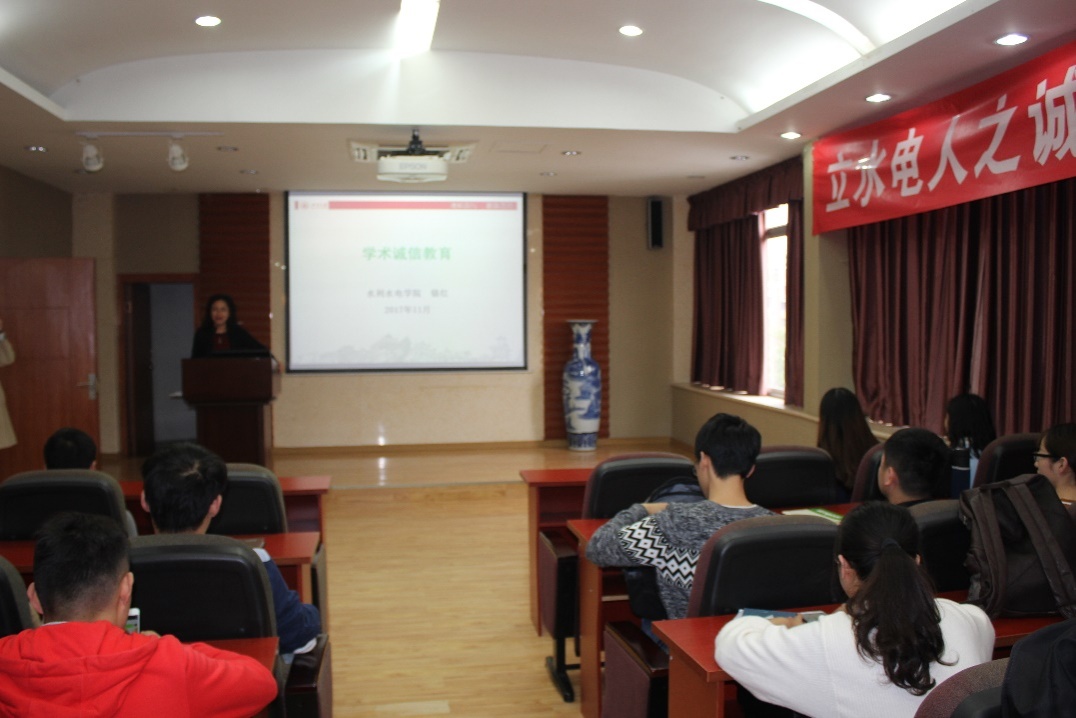为全面、扎实、深入推进科研诚信风气建设,强化研究生的学术诚信意识,倡导学术规范行为。hy590海洋之神检测中心积极响应hy590海洋之神检测中心2017年诚信教育宣传月主题系列活动的号召,于2017年11月8日下午3点在hy590海洋之神检测中心A座331开展了“学术诚信教育讲座”。讲座由研究生教育与团队建设办公室骆红副教授主讲,出席本次讲座的有研究生兼职辅导员文艳琳老师以及hy590海洋之神检测中心2017级全体研究生。
