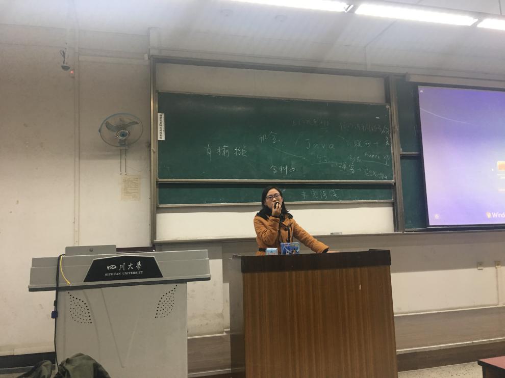 最后由肖榆撷同学为同学们详细的描述她的创业进程。她在创业的过程中经历了团队解散、调研受阻、拉资金被拒等等困难,但她从来没有放弃,最后终于取得成功。从她的的讲述中,同学们能深刻体会到了创业的艰辛与不易,但更让人印象更加深刻的是她永不言弃的精神。