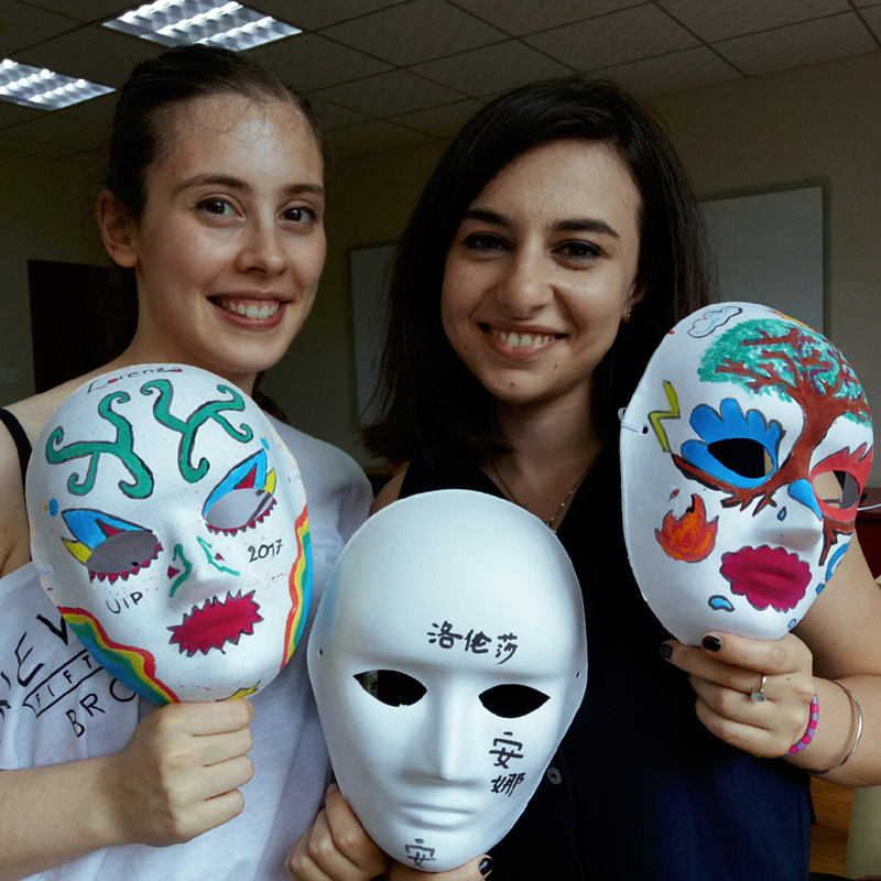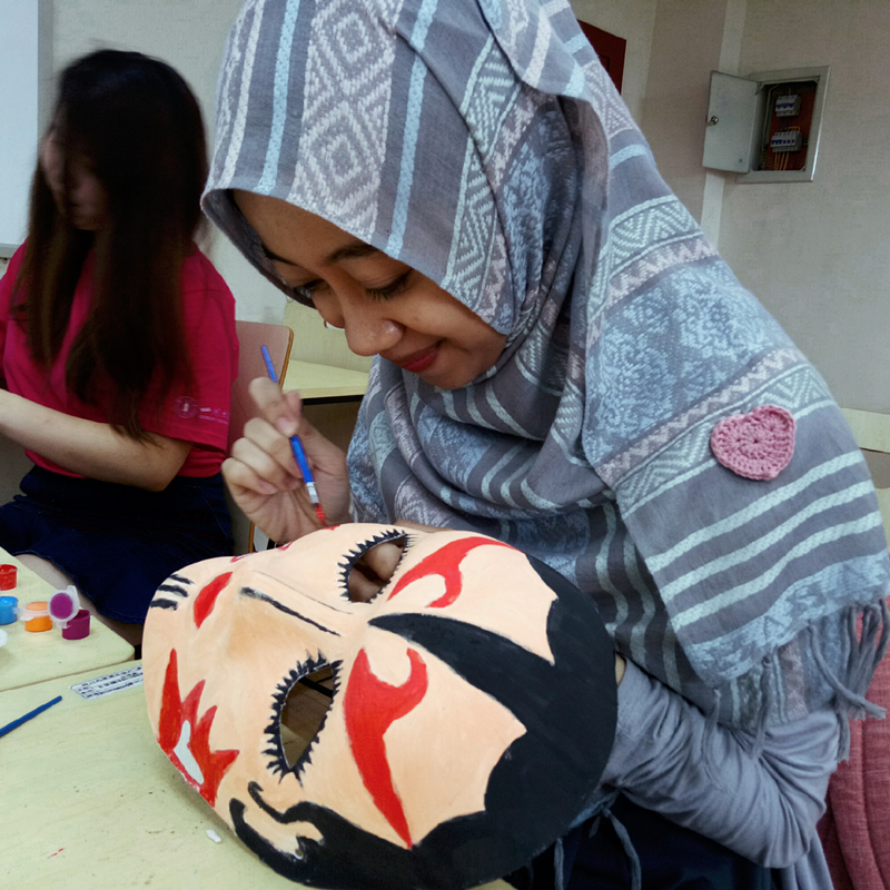 (印尼同学正认真给脸谱上色)