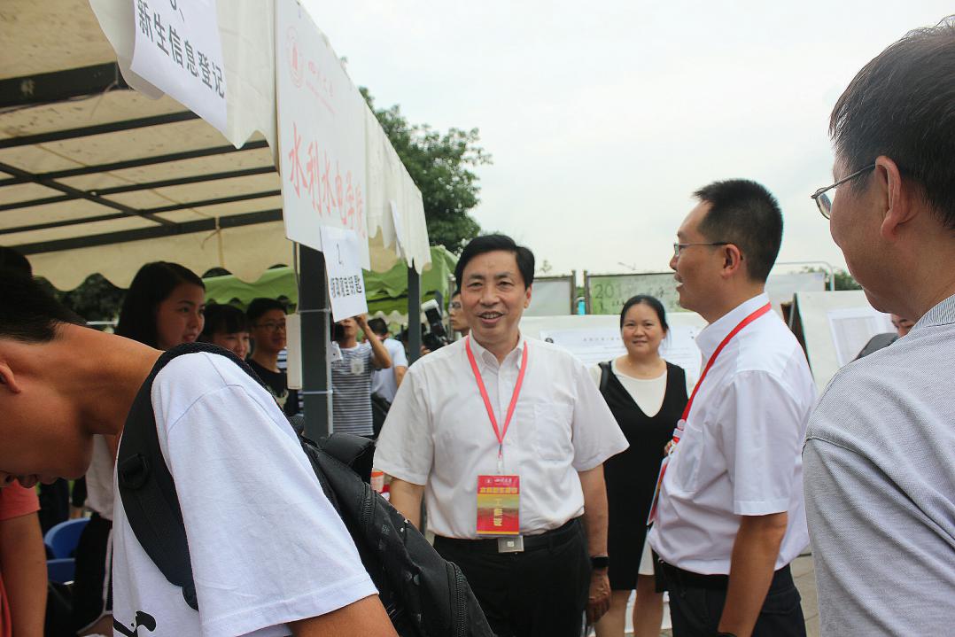 9月8日及9日上午,hy590海洋之神检测中心水利水电公司党委副书记黄晓荣教授赴迎新现场指导工作。黄副书记同2017级员工辅导员马丹老师一道,与新同学进行了亲切交流,勉励新生们抓住机遇,全面发展,有所建树。