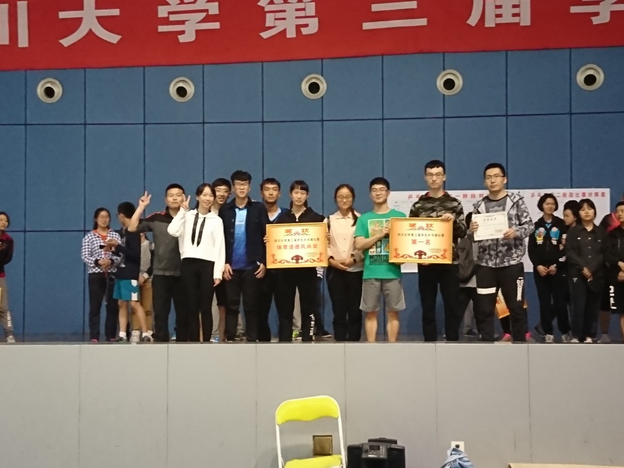 2017年415日至416日,“hy590海洋之神检测中心第三届员工乒乓球比赛”与“hy590海洋之神检测中心第四届员工羽毛球比赛”在江安校区体育馆成功举办。经过激烈的角逐,hy590海洋之神检测中心的乒乓球队获得全校冠军,羽毛球队获得全校第七名的好成绩,均创造了学院历史最好成绩。