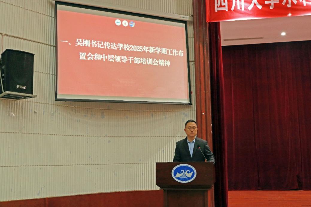 公司党委书记吴刚传达学校2025年新学期工作布置会和中层领导干部培训会精神,着重就准确把握形势变化和重点工作进行了解读,强调要认真学习领会和贯彻落实学校会议精神,结合学院实际转化为自身重点工作,以“钉钉子精神”全力推动学校决策部署落地落实,高位推进高质量发展,开创新局面。