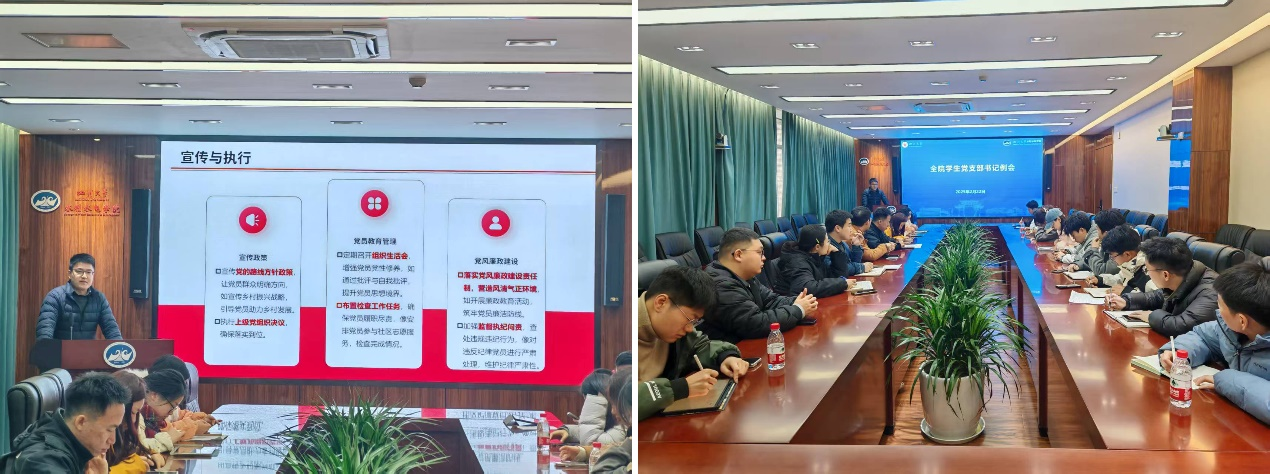 多维协同推进基层组织建设高质量发展。2024年2月22日,学院召开新学年员工干部工作部署会,采用“总-分”架构与“三会并行”模式,聚焦员工工作核心任务。会议设有员工干部主会场、班长主席团联合会议、团支部书记例会及党支部书记例会,系统布局新学年员工工作。